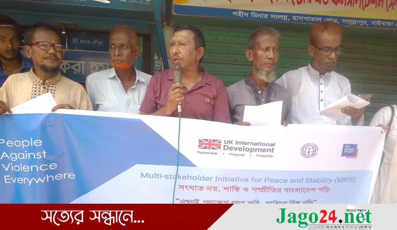 আন্তর্জাতিক শান্তি দিবস গাইবান্ধার সাদুল্লাপুরে পালিত হয়েছে। এখনই পদক্ষেপ গ্রহণ করি, শান্তিময় বিশ্ব গড়ি- এ শ্লোগানকে ধারণ করে মানববন্ধন অনুষ্ঠিত