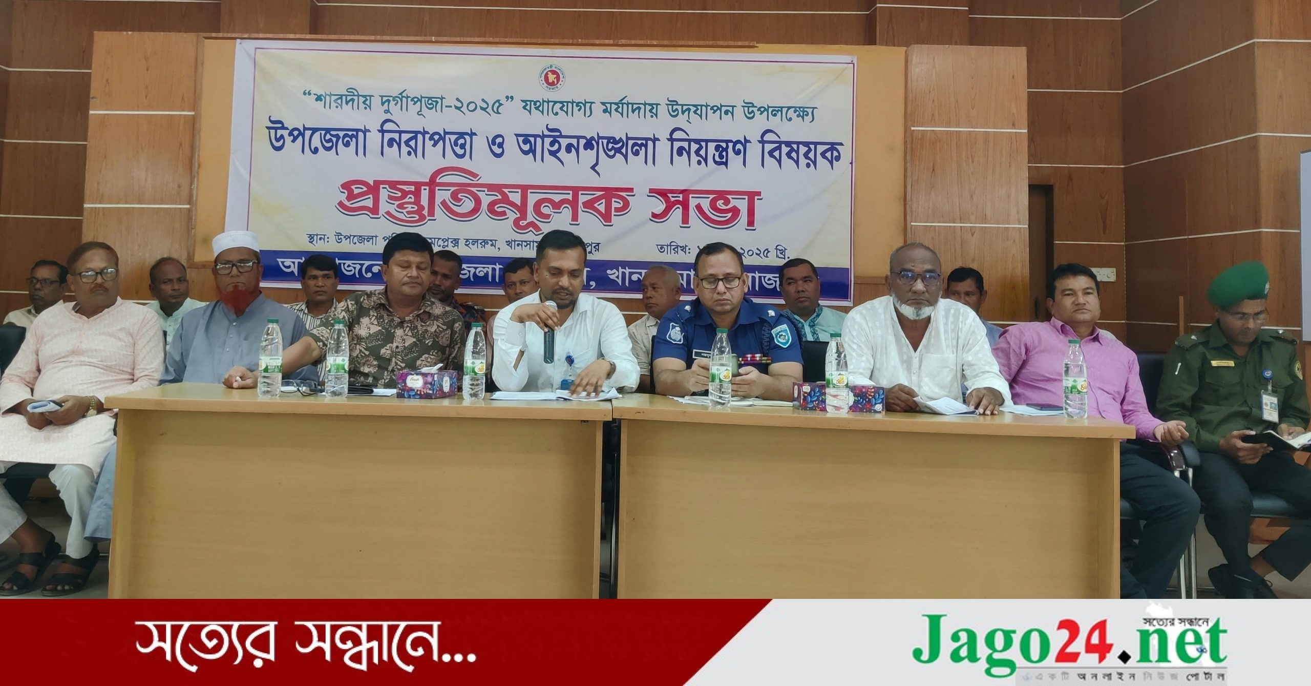 শারদীয় দূর্গাপূজা যথাযোগ্য মর্যাদায় উদযাপন উপলক্ষে দিনাজপুরের খানসামায় নিরাপত্তা ও আইনশৃঙ্খলা নিয়ন্ত্রণ বিষয়ক প্রস্তুতিমূলক সভা অনুষ্ঠিত হয়েছে। বৃহস্পতিবার উপজেলা প্রশাসনের
