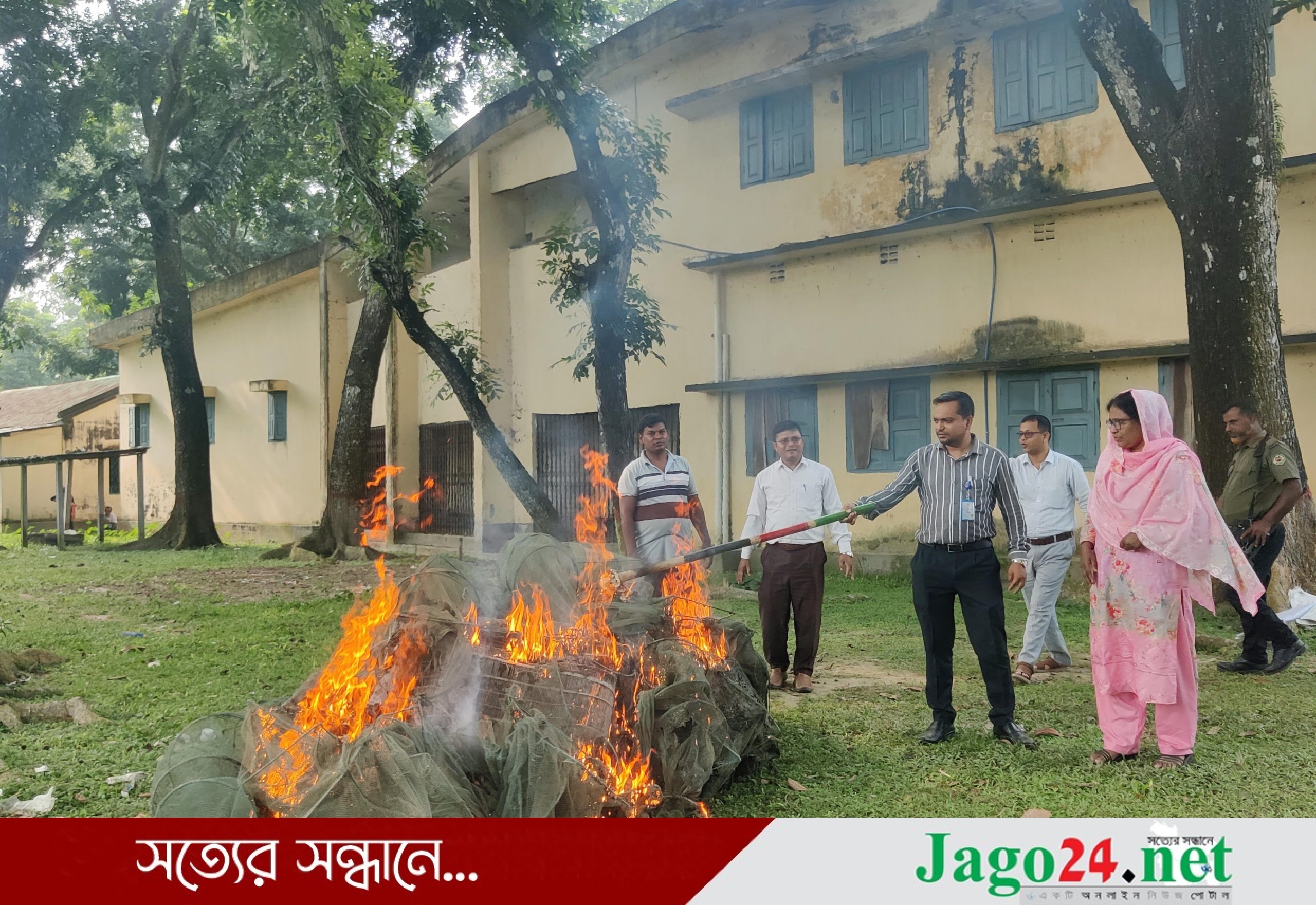 দিনাজপুরের খানসামা উপজেলার বেলান নদী থেকে প্রায় ৫০০ মিটার চায়না দুয়ারী জাল জব্দ করে পুড়িয়ে ধ্বংস করেছে উপজেলা প্রশাসন ও