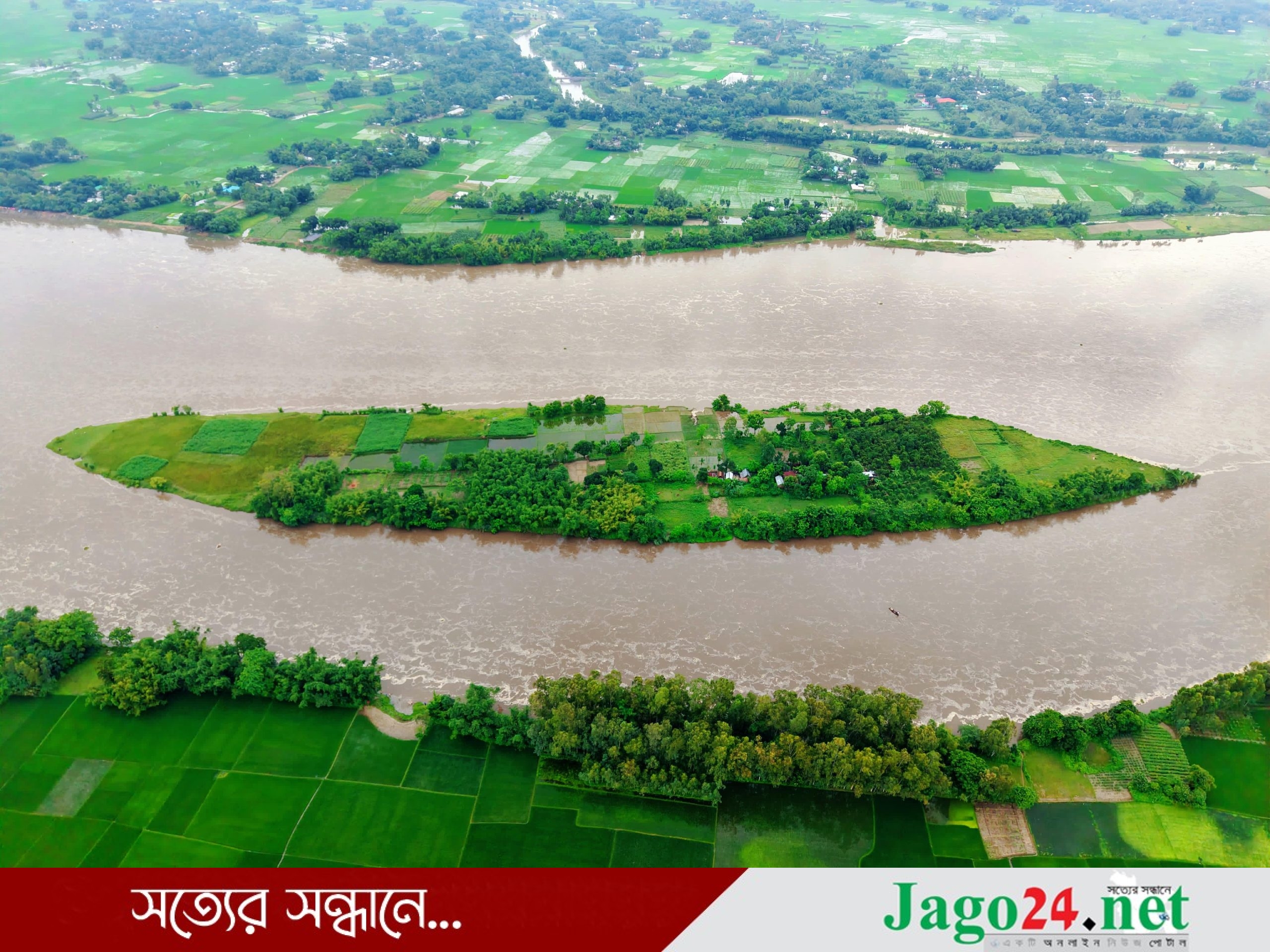 নৌকা আকৃতির মাঝিয়ালির চরে বর্ষায় নদী পারাপারের নেই নৌকা