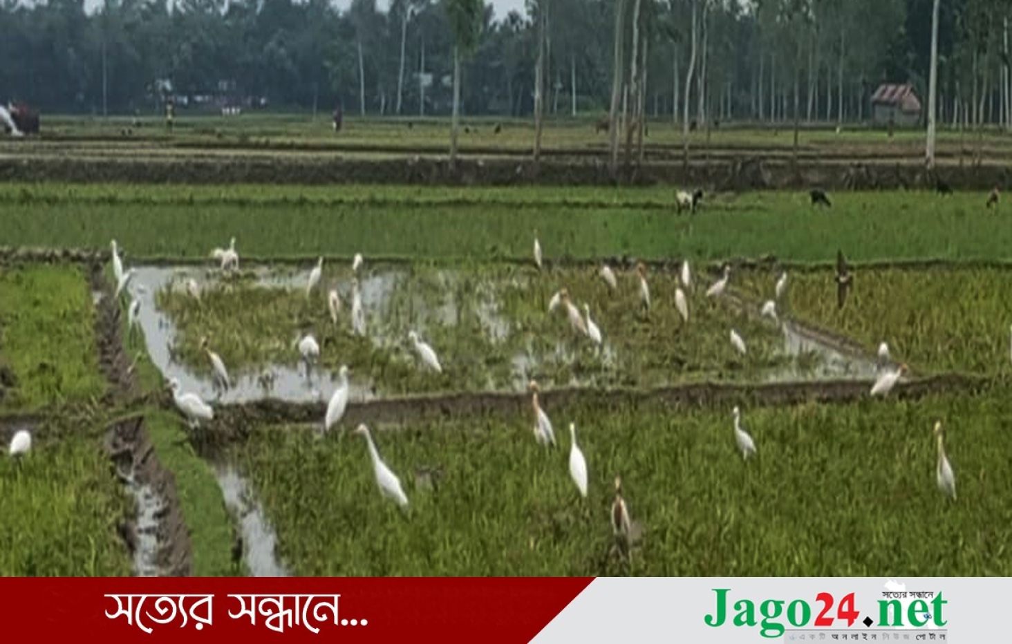 কৃষিমাঠে বকের ঝাঁক, মুগ্ধ পথচারি