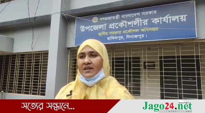 মিথ্যা অপবাদের বিচার চেয়ে আত্মহত্যার চিরকুট হাতে নিয়ে দিনাজপুরের হাকিমপুর (হিলি) উপজেলা প্রকৌশলী কার্যালয়ে সামনে দাঁড়িয়ে কল্পনা বেগম নামের এক