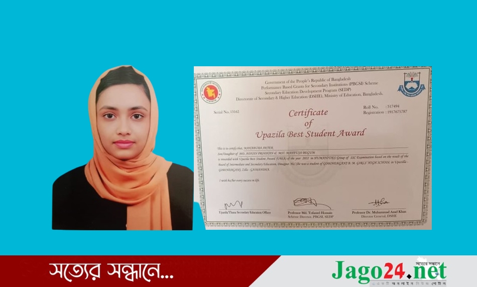 গত ২০২২ সালের এসএসসি পরিক্ষায় গাইবান্ধার গোবিন্দগঞ্জ উপজেলার শ্রেষ্ঠ শিক্ষার্থীর পুরুস্কার পেলেন গোবিন্দগঞ্জ বিএম বালিকা উচ্চ বিদ্যালয়ের শিক্ষার্থী মাহাবুবা আক্তার
