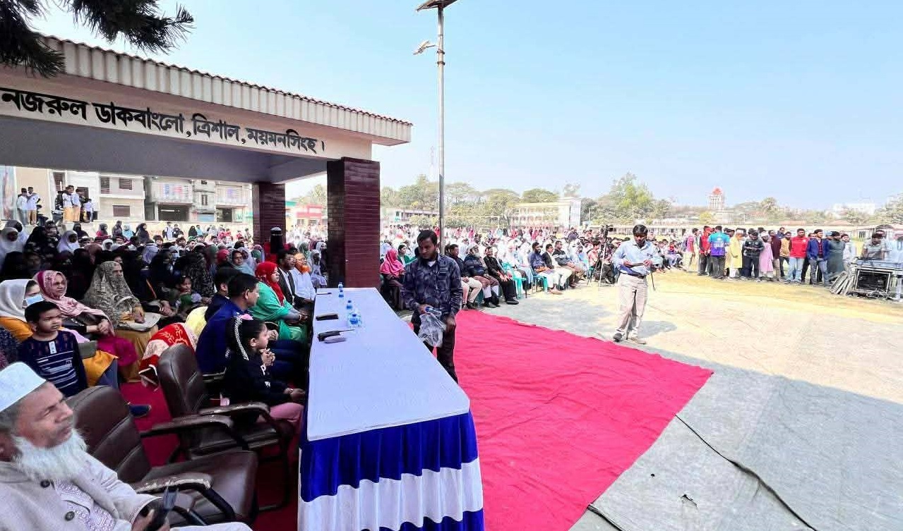 আগামী ১২ ফেব্রুয়ারি ত্রয়োদশ জাতীয় সংসদ নির্বাচন ও গণভোট ২০২৬ উপলক্ষে ভোটের গাড়ির সুপার ক্যারাভ্যান দিয়ে ময়মনসিংহের ত্রিশালে অবহিতকরণ সভার