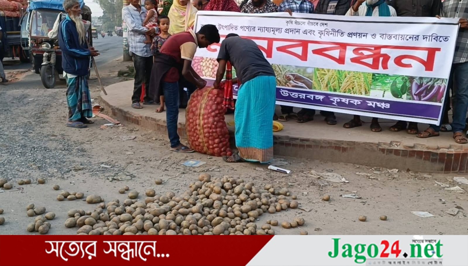 বিরামপুরে সড়কে আলু ফেলে কৃষকদের মানববন্ধন