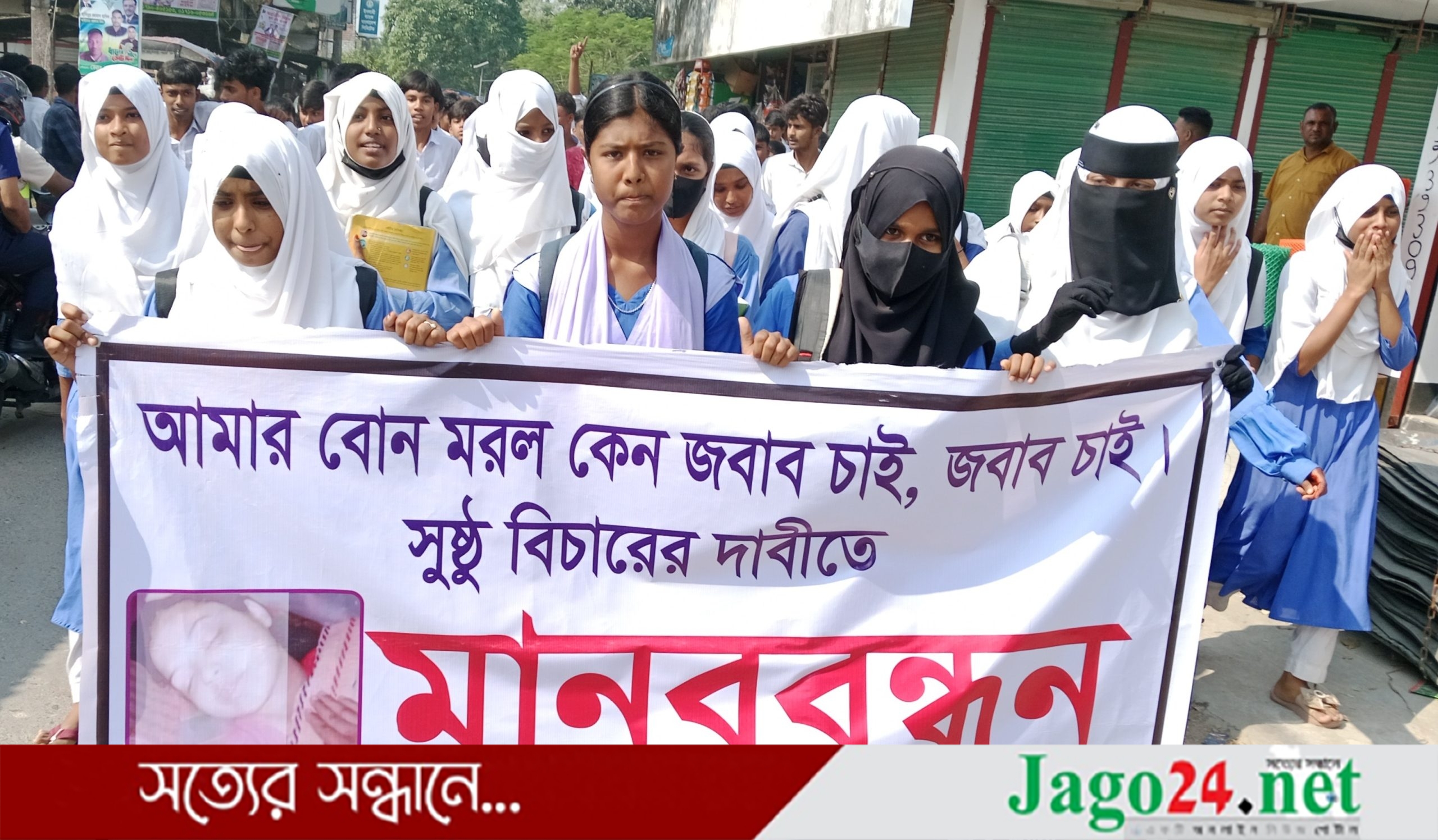 আমার বোন মরল কেন? বিচার চাই, সুষ্ঠু বিচার ও শিক্ষকের অপসরণের দাবিতে বিক্ষোভ মিছিল ও মানববন্ধন করেছেন শহীদ আব্দুল খালেক