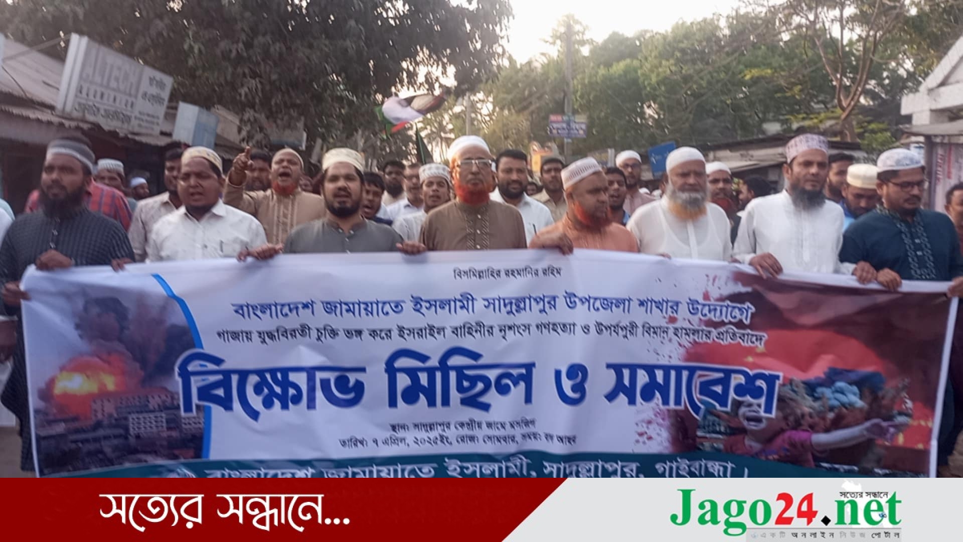 গাজায় যুদ্ধবিরতীর চুক্তিভঙ্গ করে ইসলাইল বাহিনীর গণহত্যা ও হামলার প্রতিবাদে গাইবান্ধার সাদুল্লাপুরে বিক্ষোভ মিছল করেছে বাংলাদেশ জামায়াতে ইসলামী সাদুল্লাপুর উপজেলা