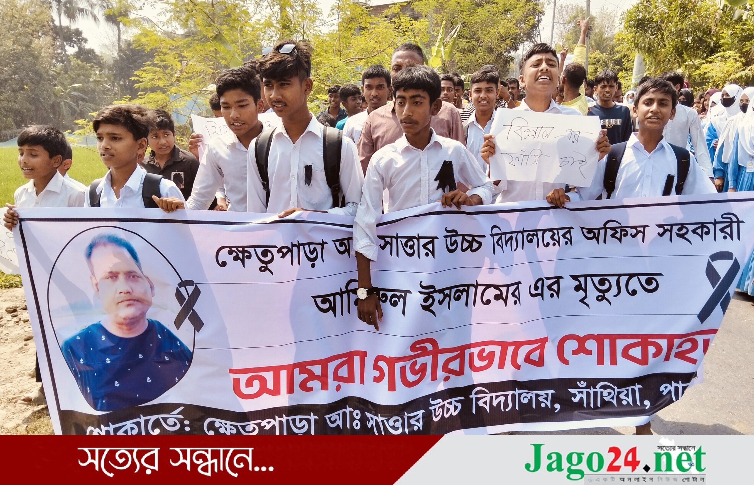 সাঁথিয়ায় হত্যার বিচার দাবিতে শিক্ষার্থীদের মানববন্ধন