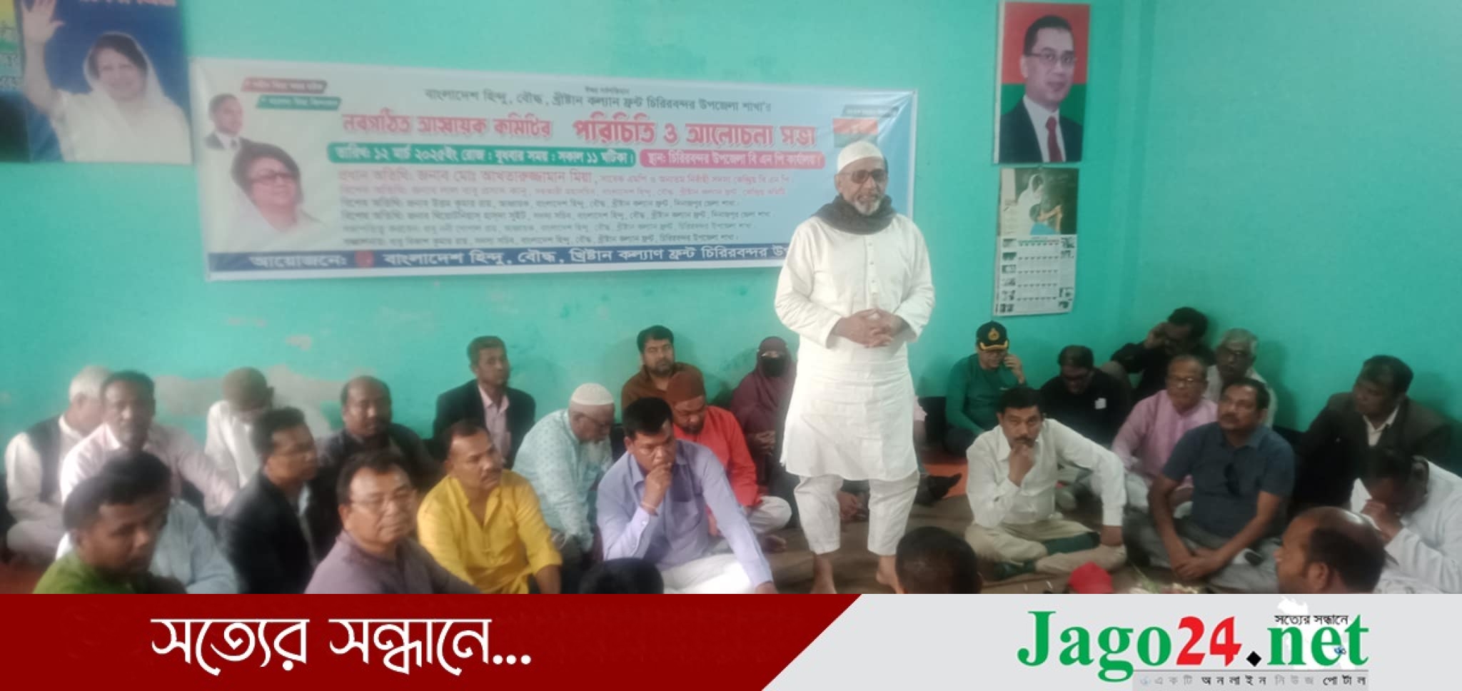 দিনাজপুরের চিরিরবন্দরে বাংলাদেশ হিন্দু বৌদ্ধ খ্রীষ্টান কল্যাণ ফ্রন্ট উপজেলা শাখার নবগঠিত আহবায়ক কমিটির পরিচিতি ও আলোচনা সভা অনুষ্ঠিত হয়েছে। বুধবার