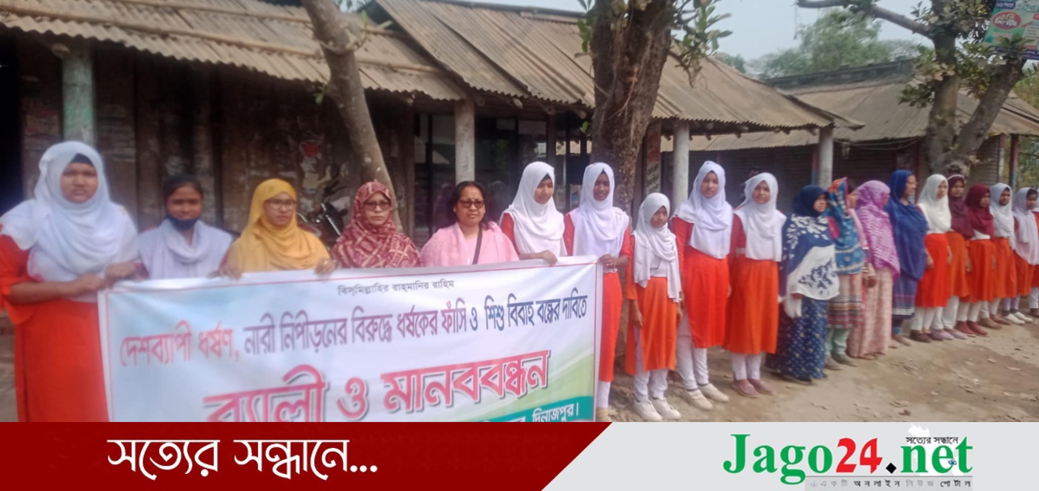 দিনাজপুরের চিরিরবন্দরে দেশব্যাপি ধর্ষণ, নারী নিপীড়নে জড়িতদের দৃষ্টান্তমূলক শাস্তি, ধর্ষকের ফাঁসি ও শিশু বিবাহ বন্ধের দাবিতে র্যালি ও মানববন্ধন অনুষ্ঠিত
