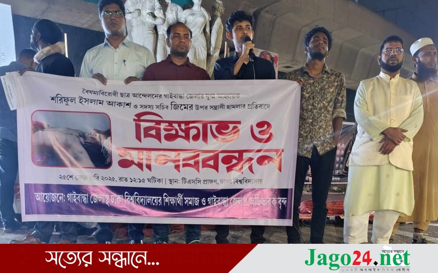 গাইবান্ধায় বৈষম্যবিরোধী ছাত্র আন্দোলনের নেতাদের ওপর সন্ত্রাসী হামলার ঘটনা ঘটেছে। এরই প্রতিবাদে ঢাকায় বিক্ষোভ ও মানববন্ধন কর্মসূচি পালন করা হয়েছে।