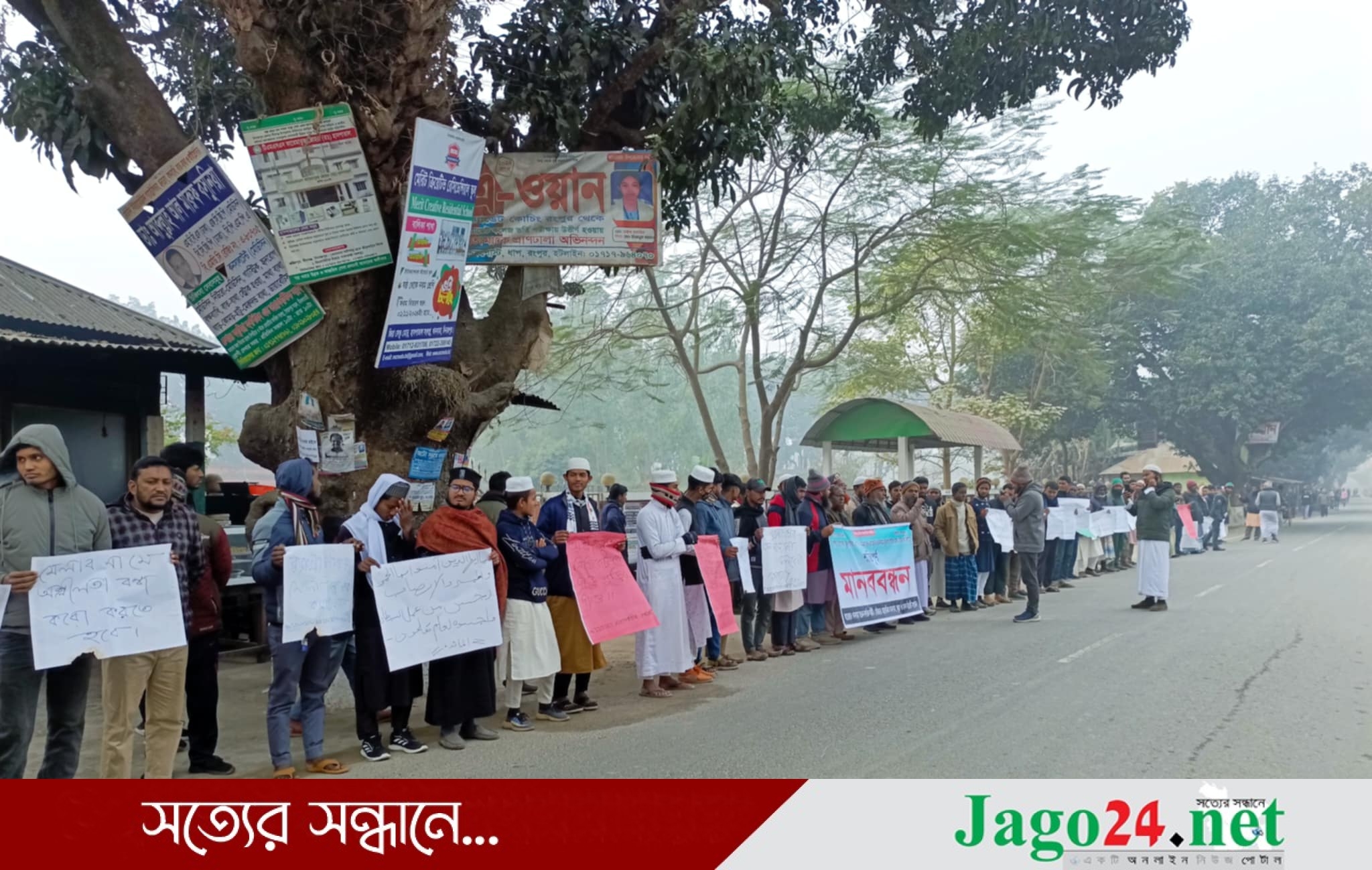 দিনাজপুরের খানসামা উপজেলার আলোকঝাড়ী ইউনিয়নের বুদুর বাঁশেরতল আত্রাই নদীর তীরে শ্মশান এলাকায় বুড়াখাঁ পীরের মেলা বন্ধের দাবিতে শান্তিপূর্ণ মানববন্ধন অনুষ্ঠিত