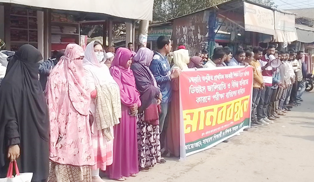নিয়োগ পরীক্ষা বাতিলের দাবিতে গাইবান্ধায় মানববন্ধন