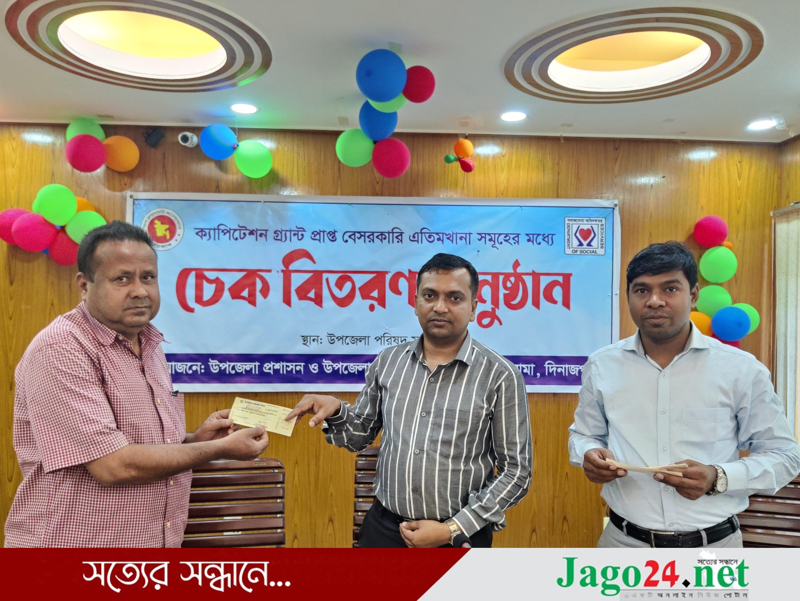 দিনাজপুরের খানসামা উপজেলায় ক্যাপিটেশন গ্র্যান্ট প্রাপ্ত ২৭টি বেসরকারি এতিমখানায় চেক বিতরণ করেছে উপজেলা প্রশাসন ও উপজেলা সমাজসেবা কার্যালয়। বৃহস্পতিবার উপজেলা