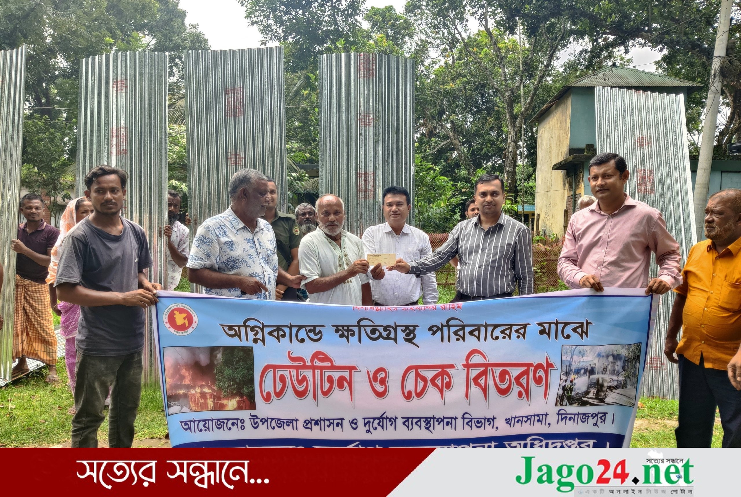 দিনাজপুরের খানসামা উপজেলায় অগ্নিকান্ডে ক্ষতিগ্রস্ত ৪২টি পরিবারের মাঝে ঢেউটিন ও নগদ অনুদানের চেক বিতরণ করা হয়েছে। উপজেলা প্রশাসন ও দুর্যোগ