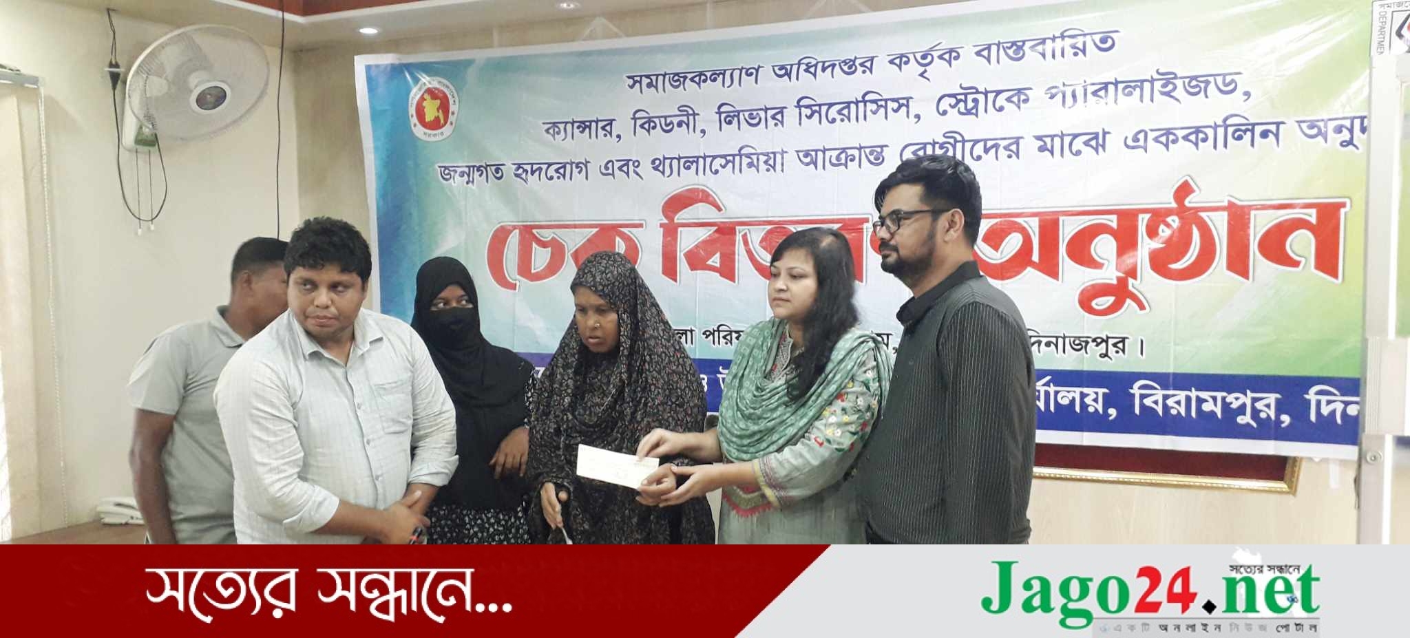 দিনাজপুরের বিরামপুরে সমাজকল্যাণ অধিদপ্তর কর্তৃক বাস্তবায়িত ক্যান্সার, কিডনী, লিভার সিরোসিস, স্ট্রোকে প্যারালাইজড, জন্মগত হৃদরোগ এবং থ্যালাসেমিয়া আক্রান্ত রোগীদের মাঝে এককালিন