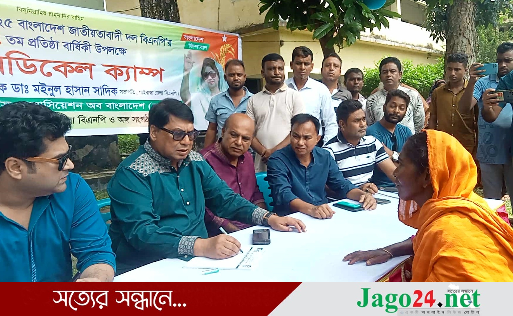 বিএনপির ৪৭তম প্রতিষ্ঠাবার্ষিকী উপলক্ষ্যে তারেক রহমানের ৩১ দফা বাস্তবায়নে গাইবান্ধার সাদুল্লাপুরে অনুষ্ঠিত হয়েছে বিনামূল্যে চিকিৎসাসেবা ক্যাম্প। এসময় বিভিন্ন এলাকার ৫