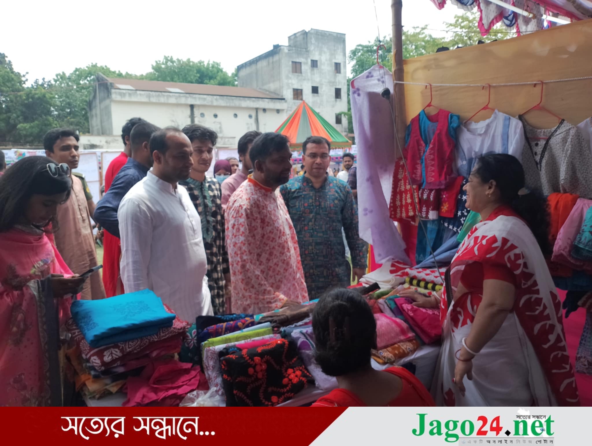 মেরাজ বুটিক ব্যাবসায়ী মেরাজ বলেন- হাতের কাজ, হ্যান্ডিক্রাফট, বুটিক জিনিসপত্র নিয়ে কাজ করা। হাতের কাজের সব রকমের জিনিসপত্র রয়েছে, যেমন- নকশীকাঁথা, ব্লকের শাড়ি, থ্রিপিস, বাচ্চাদের পোশাকসহ অনেক কিছু। বিসিক শিল্পনগরীর সহযোগীতায় এবং জেলা প্রশাসন আয়োজনে এই মেলার আয়োজন। গতবার মেলা হলেও ক্ষুদ্র উদ্যাক্তাদের নিয়ে হয়নি। এবার ক্ষুদ্র উদ্যাক্তাদের নিয়ে করায় মেলাটি অনেক প্রশংসা। মেলায় আমাদের পন্যের প্রচার হচ্ছে। মেলা হওয়ায় আমরা হ্যাপি।