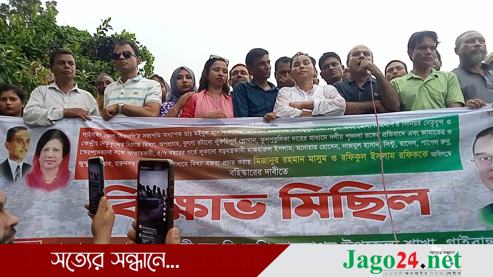 বক্তারা বলেন, গাইবান্ধা জেলা বিএনপির সভাপতি অধ্যাপক ডা. মইনুল হাসান সাদিকের ওপর ইর্শ্বান্বিত হয়ে এবং তার জনপ্রিয়তা নষ্ট করার লক্ষ্যে কতিপয় কুলাঙ্গার মিথ্যা অপপ্রচারে লিপ্ত হয়েছে। এই কুলাঙ্গারদের প্রতিহত করতে হবে। একইসাথে মিজানুর রহমান মাসুম ও রফিকুল ইসলাম রফিকসহ জামায়াতের ও স্বৈরশাসকদের সঙ্গে আঁতাতকারীদের বহিস্কারের দাবি জানান এই বক্তারা।