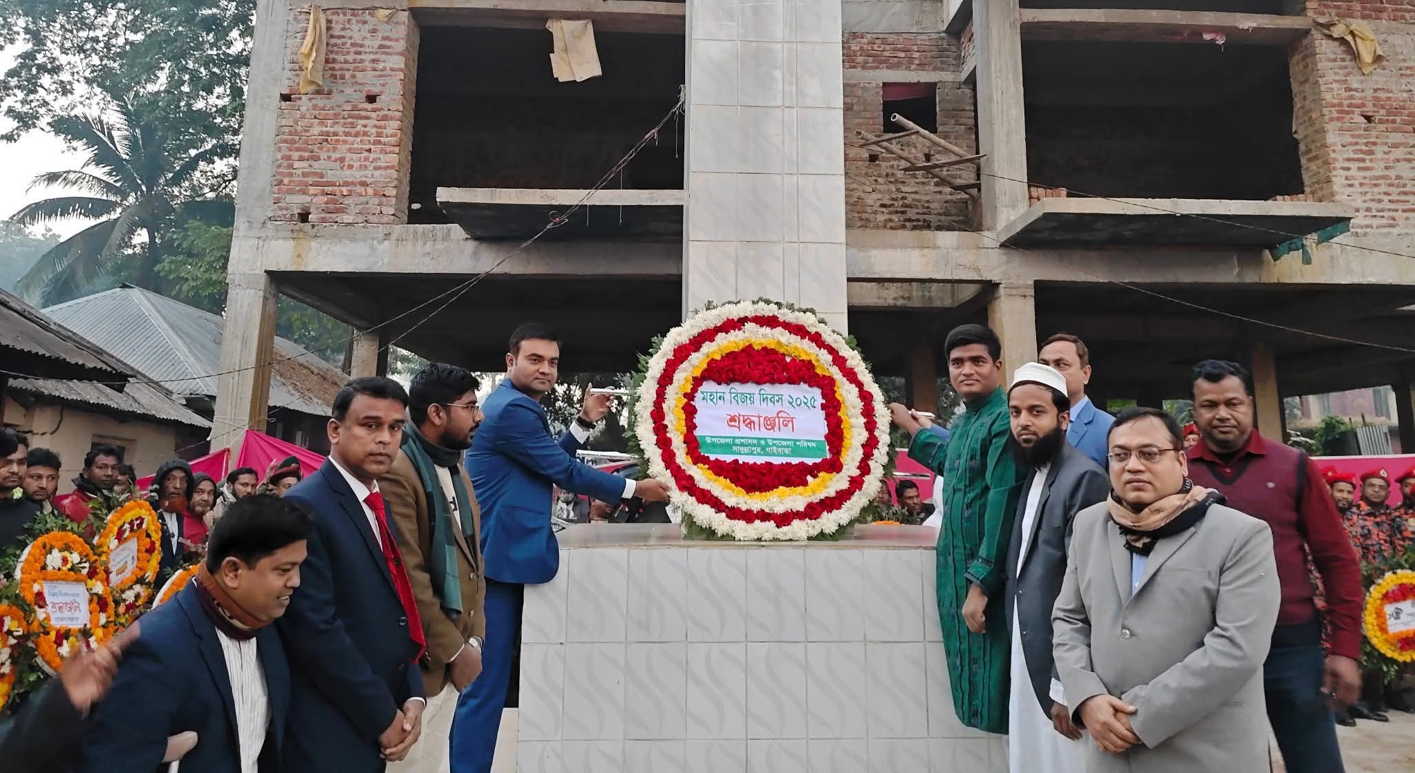 এদিন সূর্যোদয়ের সাথে সাথে ৩১ বার তোপধ্বনির মাধ্যমে মহান বিজয় দিবসের শুভ সূচনা করা হয়। সূর্যোদয়ের পর বিজয় স্তম্ভে শহিদদের স্মৃতির প্রতি শ্রদ্ধা নিবেদন করেন জেলা প্রশাসক মোহাম্মদ মাসুদুর রহমান মোল্লা, পুলিশ সুপার জসিম উদ্দিন।