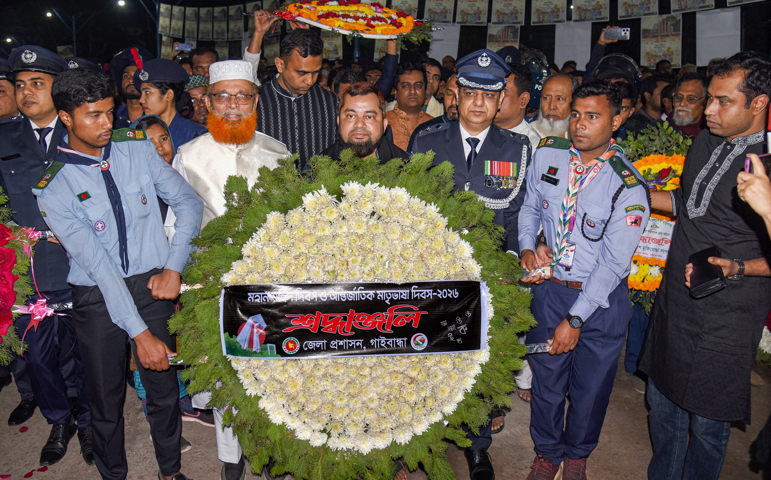দিবসটি পালন উপলক্ষে শনিবার (২১ ফেব্রুয়ারি) প্রথম প্রহরে গাইবান্ধা পৌর পার্কের কেন্দ্রীয় শহিদ মিনারে পুস্পস্তবক অর্পণ করা হয়।